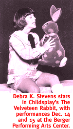 Just the ticket for relief from cloying holiday cheer, no doubt. In her works a row of legs appear, floating on a bed of red velvet, a man uses a saw in preparation for potential disaster, and themes of desire, anger, isolation and moody eroticism run rampant. The show continues through February 6, with an opening reception from 7 to 9 tonight, at Elizabeth Cherry Contemporary Art, 1421 E. Broadway. For information, call 903-0577. RAVISHING RODENT. The award-winning Childsplay theater troupe continues a charming holiday tradition with their production of The Velveteen Rabbit. Adapted from the book by Margery Williams, it tells the story of a stuffed bunny that becomes the real McCoy through a young boy's love. Performances are 2 o'clock today, and 2 and 4:30 p.m. tomorrow at the Berger Performing Arts Center, 1200 W. Speedway. Tickets are $12.25 for adults, $9.25 for students, children and seniors, and available by calling 1-800-583-7831. VOCAL TIDINGS. Desert Voices, Arizona's premiere gay and lesbian chorus, hits the yule full force will such classics as "The Grinch Who Stole Christmas," "White Christmas," "Rudolph The Red-Nosed Reindeer," and traditional Tohono O'odham holiday music. They'll also debut a new work, "The White Buffalo," based on a Native American tale. Performance is at 8 p.m. at the PCC West Campus Proscenium Theater, 2202 W. Anklam Road. Tickets are $12 for reserved seats, $10 for seniors and students, $15 for box seats, and are available at Antigone Books, Tucson Trunk and the PCC West Campus box office. Call 791-9662 for information.