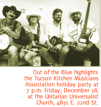 HOLIDAY SUITE. Ballet Arts Foundation performs its version of the seasonal masterpiece, The Nutcracker. Based on the original story by E.T.A. Hoffman (published in 1816), and subsequently performed in St. Petersburg in 1892, the tale has been a perennial crowd pleaser. This production with Tchaikovsky's classic score will feature elaborate costumes, magical toys and a stunning set. Show time is 7 p.m. in the PCC Proscenium Theatre, 2202 W. Anklam Road. Tickets are $12, available at the PCC Center for the Arts box office, or by calling 623-3373. FOLK GATHERING. Friends and supporters of the Tucson Folk Festival--and all other traditional music-minded souls--are invited to the Tucson Kitchen Musicians' Holiday Party. Proceeds will benefit the festival. The gathering promises great chow, and of course top-of-the-fret music. Players on tap include Arthur Migliazza on traditional blues-style piano, the country-folk ensemble Copper Moon, the Womensong vocal trio, Evan Dain on tenor banjo, contemporary bluegrass by Out of the Blue, and swingmeisters Dain, Greco and Daley. The party runs from 7 to 11 p.m. in the Unitarian Universalist Church, 4831 E. 22nd St. Admission is $6, $5 for TKMA, TFTM, TBS and KXCI members, $2 for children ages 16 and under. Small children are admitted free. Call 319-8599 for details.