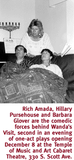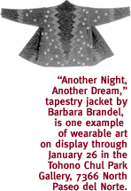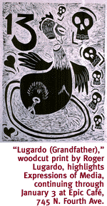 A handful of assumptions were made, among them that the city would improve public transportation and convert several nearby surface parking lots to multi-story garages. That would ensure adequate access and parking for the theoretical projects--which now included a restaurant, pre-school, office building, and a multi-use cooking school, cafe and bakery. So how did the elaborate plans work out? You be the judge. The results are now on display, with a special closing reception from 6 to 10 p.m. Saturday, January 17, in the Meliora Gallery, 178 E. Broadway. Regular gallery hours are 9 a.m. to 5 p.m. Monday through Friday. For details, call 792-9544. UP FRONT. As part of its Figurehead series, the Tucson/Pima Arts Council Community Gallery hosts Full-Frontal Night, an exhibition featuring works by local artists including Diane Kelly, Jill Susan Kelly, Michael Longstaff, Ruth K. Marblestone, Cara Zimmerman and Jennifer Jones "Figurehead provides a forum for young Tucson artists whose work portrays the human form within a synthesis of diverse media," Diane Kelly says. "The exhibition will be the perception and portrayal of innocents and dreams using the dissolution and re-creation of the human form." Exhibit runs through January 16 in the Tucson/Pima Arts Council Community Gallery, 240 N. Stone Ave. Hours are 8:30 a.m. to 5 p.m. Monday through Friday. For information, call 624-0595.
