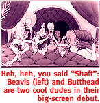 ![]() America's Favorite Fartknockers Make It To The Big Screen. By Jim Nintzel BEAVIS AND BUTTHEAD creator Mike Judge remembers watching Looney Toons as a kid. "There was a show in Albuquerque called Captain Billy," Judge recalls. "He was a local guy and he'd show cartoons and you'd go there for your birthday and he got shot because he was fooling around with someone else's wife. I remember my mom trying to explain it to me. I was asking her, 'Why did he get shot?' And she goes, 'Maybe he was just hugging her to say, "good job," and someone walked in and saw it and shot him.' "