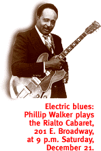 More than 6,000 of the little duffers are expected to show up to receive gifts and food, and to chum around with cheery old St. Nick. In fact, Mr. and Mrs. Claus are slated to arrive via fire truck to meet their vast sea of little fans. Kids from all over Tucson are invited. For many, this will be the only Christmas they'll have this year, and folks are requested to help by donating everything from stuffed toys, games and paper goods to sodas and ice cream. The event runs from 10 a.m. to 4 p.m. at the TCC, 260 S. Church Ave. For information, call 299-1812. WALK ON BOY. He's been noted as Robert Cray's biggest influence, and actually wrote Cray's hit, "Don't Be Afraid of the Dark." Now Phillip Walker brings his gritty brand of blues and R&B to the Rialto Cabaret as part of the Rialto Theatre benefit concert series. With a career spanning four decades, Walker ranks among the nation's legion of unsung blues heroes. Born in bayou country, raised in the Lone Star State and now a Californian, he effortlessly blends that regional trio of influences into a unique style. Tonight,Walker provides the chance to hear some low-down wailing, and to help the historic Rialto's ongoing restoration project. Show time is 9 p.m. at the Rialto Cabaret Theatre, 201 E. Broadway. Tickets are $5, free for Friends of the Rialto, and available at Hear's Music. Call 740-0126 for information. FLIGHTY. Tucsonan author Leslie D'Allesandro Hill signs copies of her latest offering, Fairies Have Wings But They're Not Angels!, at The Book Mark. "It's a fantasy book with great illustrations," says store spokeswoman Gloria Chivers. "It also appeals to general audiences, to kids as well as adults." The signing runs from 1 to 3 p.m. at the Book Mark, 5001 E. Speedway. Call 881-6350 for information.