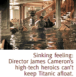 While Cameron never promises a documentary, his tale of diamond hunters and spurned lovers toting guns does disservice to Titanic's victims and survivors. With a budget twice that of Waterworld, he could have afforded an historian. Or even a $6 copy of Walter Lord's A Night to Remember. But Cameron is caught in his own love story--between himself and his camera--and the $190-million Titanic is inaccurate and disappointing. It's mere costume jewelry: dazzling to look at, but a forgery just the same.